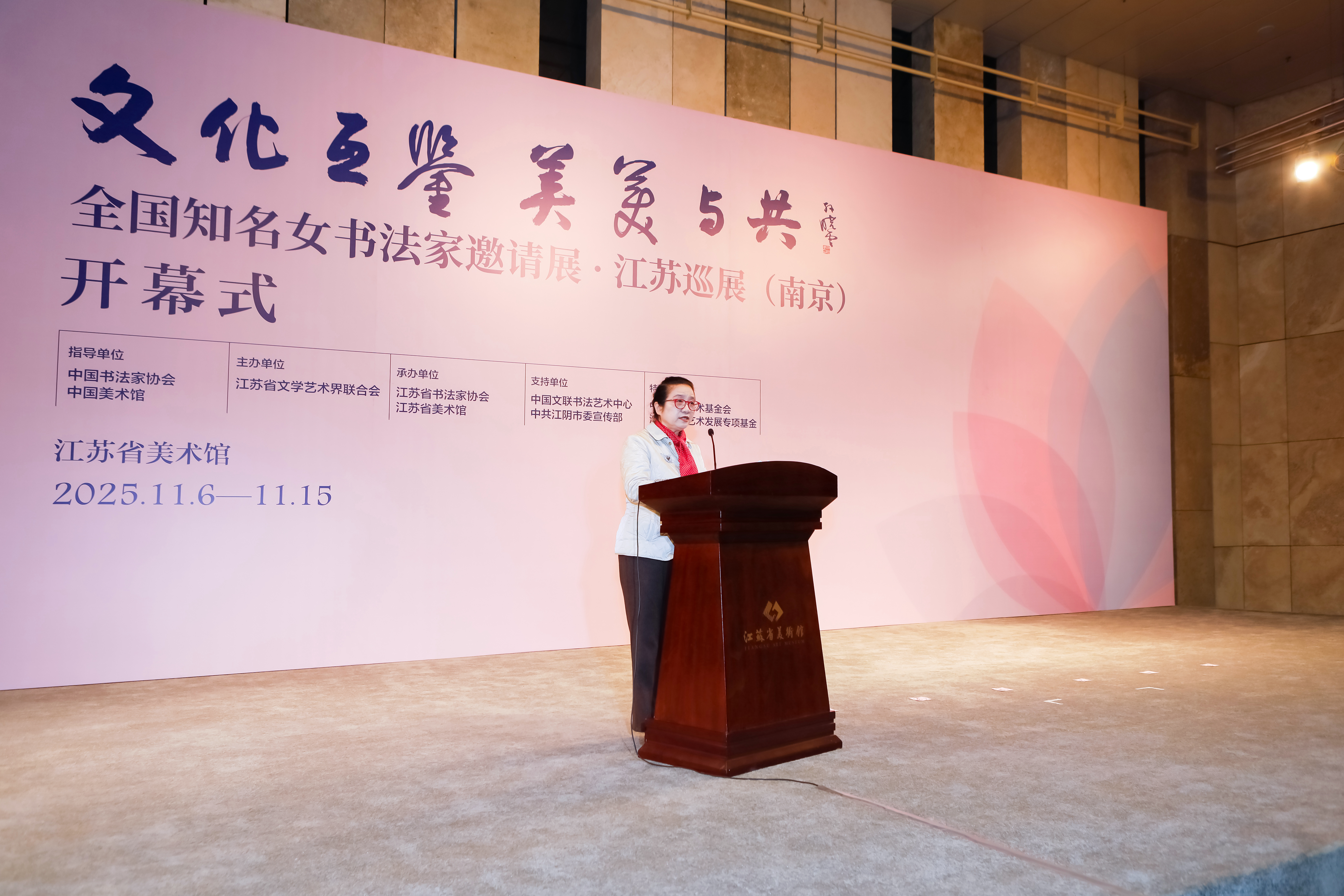 11月6日,由中國書法家協(xié)會、中國美術(shù)館作為指導(dǎo)單位,江蘇省文學(xué)藝術(shù)界聯(lián)合會主辦,江蘇省書法家協(xié)會、江蘇省美術(shù)館承辦的“文化互鑒 美美與共——全國知名女書法家邀請展”江蘇巡展在南京開幕。